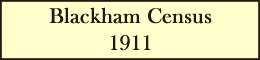 This uses mainly the transcription provide by ancestry.co.uk with corrections where spotted. Please let me know if you see any other mitakes Once again I have taken my starting point on the Withyham side as Summerford although most people on Lyewood Common would not think of themselves as Blackham inhabitants, however to exclude that part would mean missing out Blackham Court which would surely be a mistake. The census appears to have been gathered haphazardly - e.g. between Stephenetts Farm The top line of each entry below is the address, the number on the right denoting number of rooms. This included the instruction: 'Count the kitchen as a room but do not count scullery, landing, lobby, closet, bathroom; nor warehouse, office, shop.' The 1911 census gave details of the family, generally next to the woman's name, listing years married (Y), total number of children (T), number of children living (L), and number of children dead (D) Note when Withyham is given as place of birth that could denote parish and so mean Blackham |